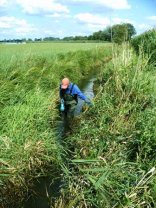 Mit einer sehr einfachen Methode brachten einige Mitglieder der örtlichen Agenda21 den Bach wieder zum Fließen und erreichten an beiden Armen fast die volle Durchlässigkeit. Durch „mittiges Gehen" im Bach wird der Bodenschlamm losgetreten und lagert sich an Gleituferstellen ab. Eine schmale Rinne entsteht, die Eigendynamik des Gewässers erhöht sich. Zudem werden mit Kompostkrallen eingefallene Äste und Laub am Ufer abgelegt.