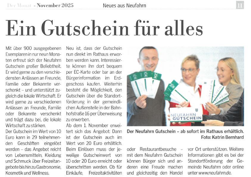 Wie geht es mit dem Neufahrn Gutschein in 2025 weiter?